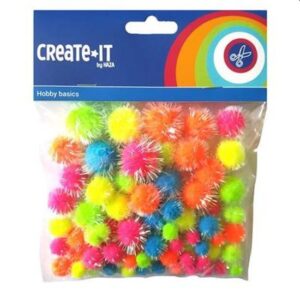 Create-It Pompons Glitter Neon Mix 75 Stuks