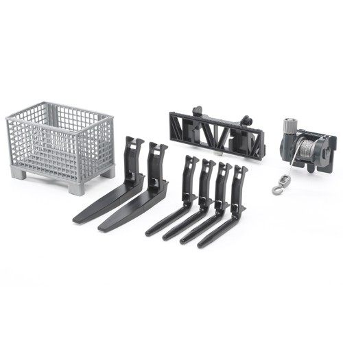 Deze accessoires passen op alle trekkers uit de Bruder Profi serie + de Manitou verreiker. Laden, lossen en verplaatsen wordt een eitje met deze gave en zeer complete accessoire set. Dankzij de adapter bevestig jij de diverse vorken of de lier…