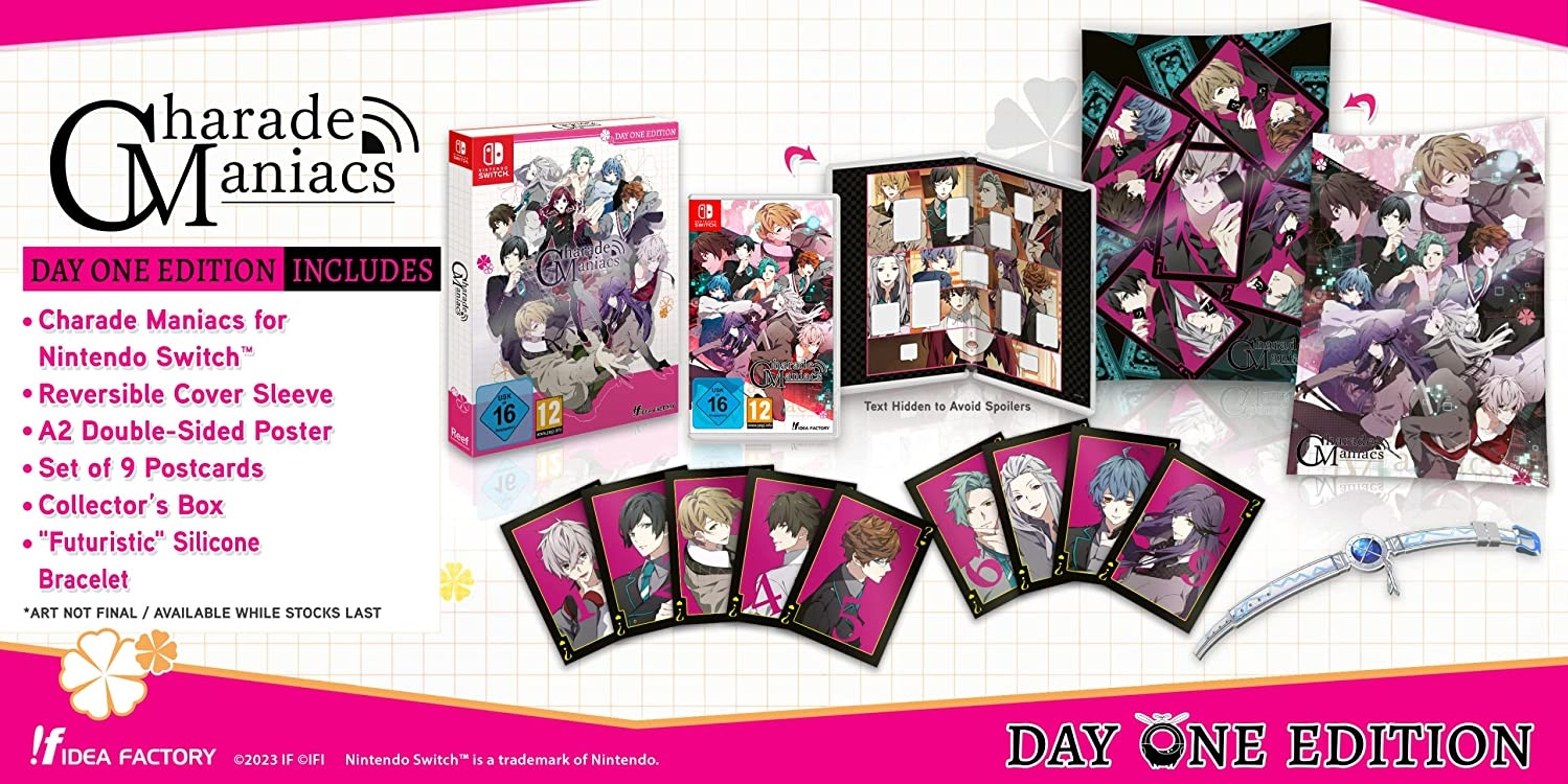Een mysterieuze figuur ontvoert Hiyori Sena, brengt haar met negen andere ontvoerden naar een vreemde wereld en verwelkomt hen in een wereld genaamd Arcadia.Iedereen moet dramas uitbeelden om te kunnen ontsnappen, en dat allemaal terwijl hij de attributen van een verrader vermijdt.Voer je eigen onderzoek uit om naar aanwijzingen te zoeken – en vind onderweg romantiek!Van de schrijver van Psychedelica of the Black Butterfly, Uta Amamiya, en de illustrator van Norn9, Teita, wiens hand zal ze aan het eind nemen?Day One Edition bevat- Charade Maniacs for Nintendo Switch- Reversible Cover Sleeve- A2 Double-Sided Poster- Set of 9 postcards- Collectors Box- Futuristic Silicone Bracelet