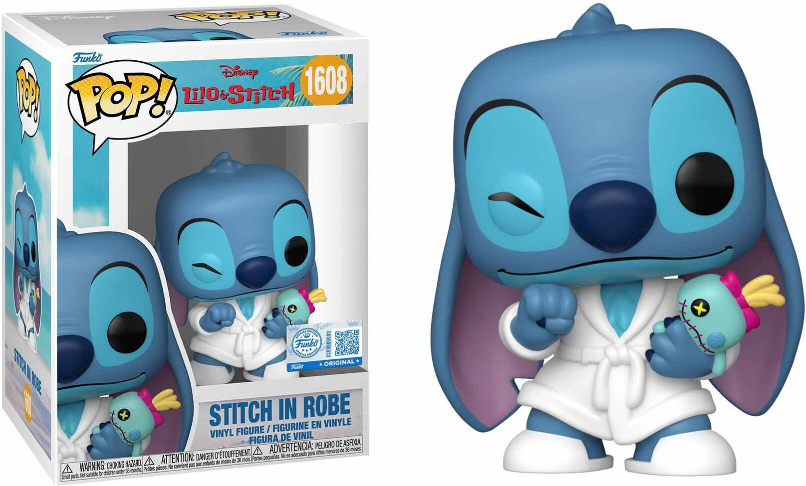 – Serie Disney- Figure Stitch in Robe- Nummer 1608 van Pop!- Formaat 9,5cm – Verpakt in collectors box- Officile licentie