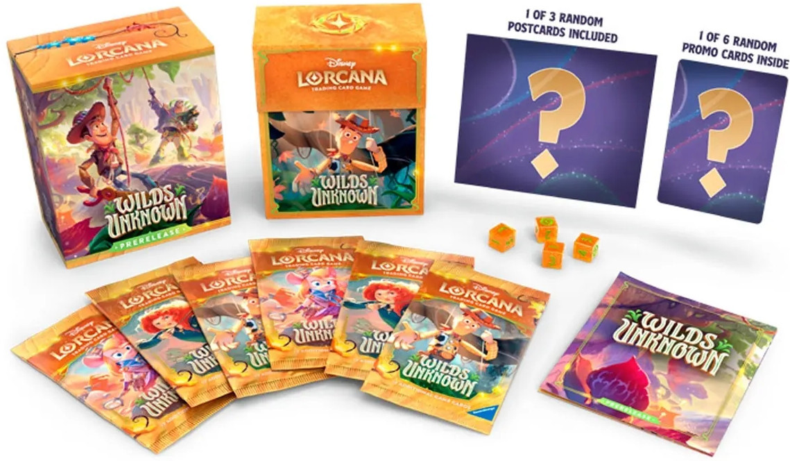 Kick-start your adventure in the Wilds Unknown!Begin je Disney Lorcana avontuur met de Wilds Unknown Prerelease Pack. Deze exclusieve pre-release set is perfect voor spelers die hun collectie willen opbouwen en meteen een paar spannende rondes Pack Rush willen spelen. Ontdek de verrassingen van de jungle-achtige Wilderknot, de Torchlight Peaks en The Great Empty Sea!Product Details 6 Wilds Unknown booster packs 1 van 6 willekeurige Traveler promo kaarten 1 kartonnen deckdoos 4 Disney Lorcana dobbelstenen 1 speciaal set-specifiek item 1 regelsheet Officieel Disney Lorcana productElke pack is een nieuwe kans om krachtige kaarten en magische strategien te ontdekken in de wereld van Lorcana!