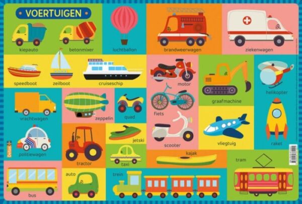 Eten wordt nog leuker met deze Educatieve Onderleggers Voertuigen! Leg de onderzetter onder het bord van je kindje, zodat hij tijdens de maaltijd allerlei nieuwe voertuigen kan ontdekken. Door de vele verschillende kleuren valt de onderzetter meteen…