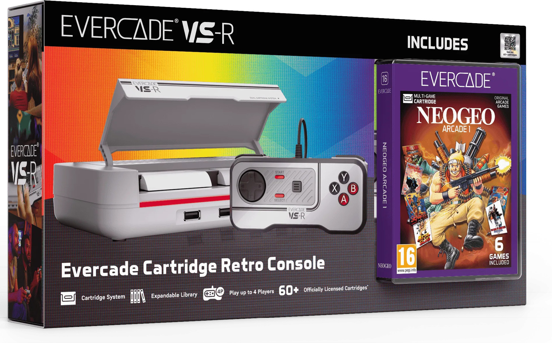 De Evercade VS-R Solo is de nieuwste variant van de bekroonde home retro gameconsole van Evercade, inlcusief NeoGeo Arcade Collection 1.De Evercade VS-R Solo is ontworpen in een nieuw, op retro genspireerd kleurenschema en past perfect bij je consolecollectie! Deze console is ontworpen om op je TV te spelen en is geoptimaliseerd voor een spelervaring thuis. De nieuwe Evercade VS-R Solo console ondersteunt Evercade cartridges en brengt arcade, console en thuiscomputer gaming in jouw handen met meer dan 600 games in 60 fysieke Evercade cartridge collecties – vijf decennia aan gaming beschikbaar om te spelen op n apparaat. De console heeft ook een dubbele cartridgesleuf voor meer spelkeuze, 4 USB-poorten voor multiplayer-actie voor maximaal 4 spelers en ingebouwde WiFi voor eenvoudige updates.Kenmerken- Evercade VS-R brengt klassieke retro gaming naar je TV.- Evercade VS-R controller ook inbegrepen.- Werkt met alle Evercade cartridges, waaronder meer dan 60 cartridges en meer dan 600 games.- Speel met maximaal 4 spelers.- 1080p-uitgang voor HDMI-tvs.- Sla je spel op met meerdere save states.- Speel op console, thuiscomputer, arcade en meer met meer dan vijf decennia aan officieel gelicentieerde games op het Evercade cartridge ecosysteem.- Meerdere schermverhoudingen en filters.- WiFI ingebouwd.
