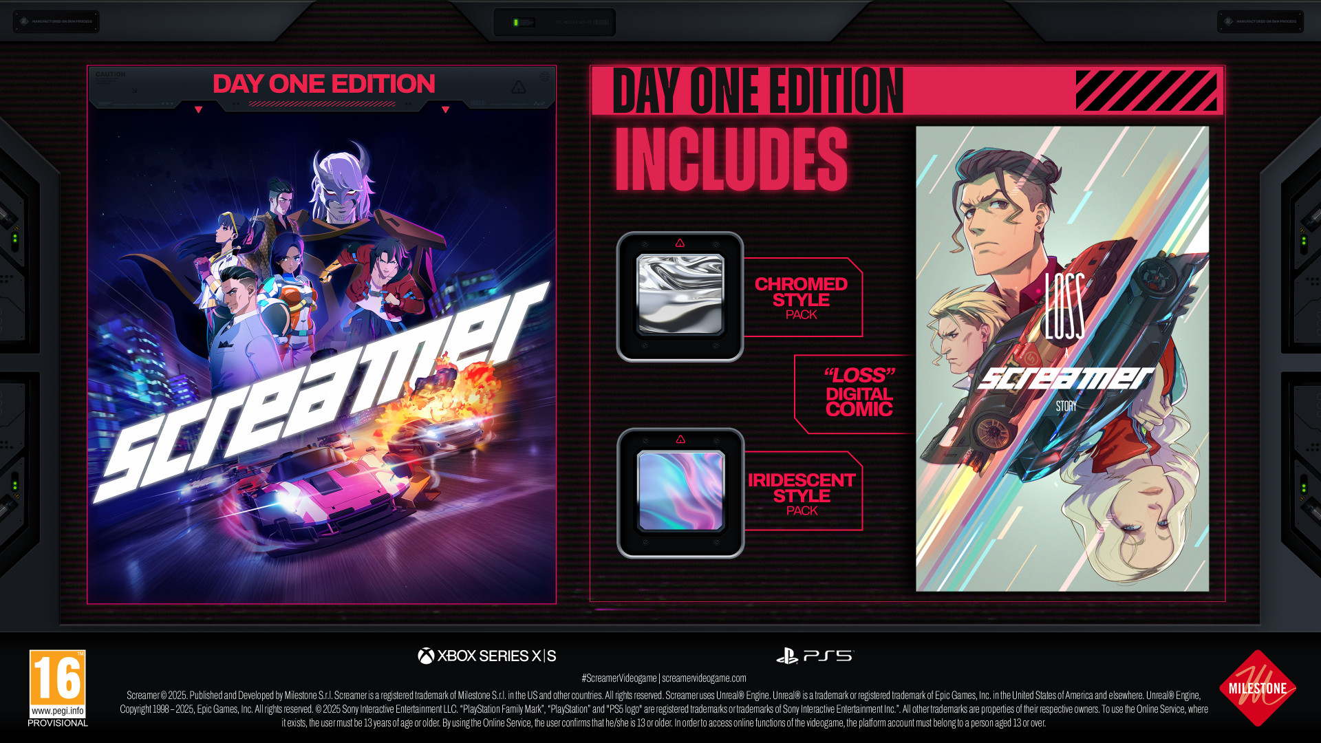 Supersnelle actie en anime-vormgeving smelten samen in deze arcade-racegame met vechtmechanics en een verhaallijn die keihard aankomt. Hier racen sommigen voor roem, anderen voor macht of wraak. Elke race is een gevecht en elk gevecht is persoonlijk.Verlangen, ambitie, wraak.Sta op voor alles waar je in gelooft en bewijs dat het een strijd waard is deze oproep moeten alle Screamers beantwoorden om de duistere waarheid achter de bruutste race ooit en zijn mysterieuze leider te achterhalen.Ga de strijd aan in een mix van extreem racen en serieuze vechtmechanics. Beleef een boeiend verhaal met legendarische personages. Drift in de ziekste voertuigen en ontdek wat er achter deze anime-achtige wereld schuilgaat.Wees de eerste op het circuit. Betreed de wereld van Screamer met speciale extra content die je diep in de actie dompelt. ALS EEN VALLENDE STER. BRAND.De Day One Edition bevat- Volledige game – fysiek- 2 DLC-pakketten met speciale kleurenschemas voor elk voertuig- Screamer – Chromed Style Pack- Screamer – Iridescent Style Pack- Digitaal stripboek LOSS – de originele Screamer-strip die een originele personage-arc toevoegt aan de game-lore