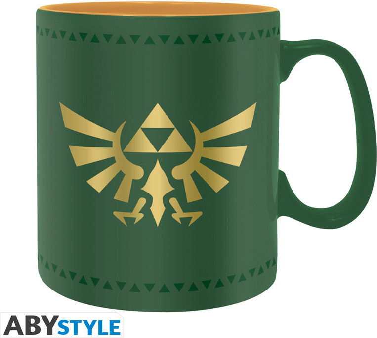 Drink als een koning met deze Legend of Zelda mok met het Hyrule-embleem van ABYstyle! Het Hylian-wapen is het ware symbool van de godin Hylia en een iconisch onderdeel van deze legendarische gameserie, dus ideaal voor elke fan, ongeacht welke game je favoriet is.- Kingsize (460 ml)- Hoogwaardig drukproces.- Niet geschikt voor de magnetron of vaatwasser.- Materiaal keramiek.- Verpakking vensterdoos.